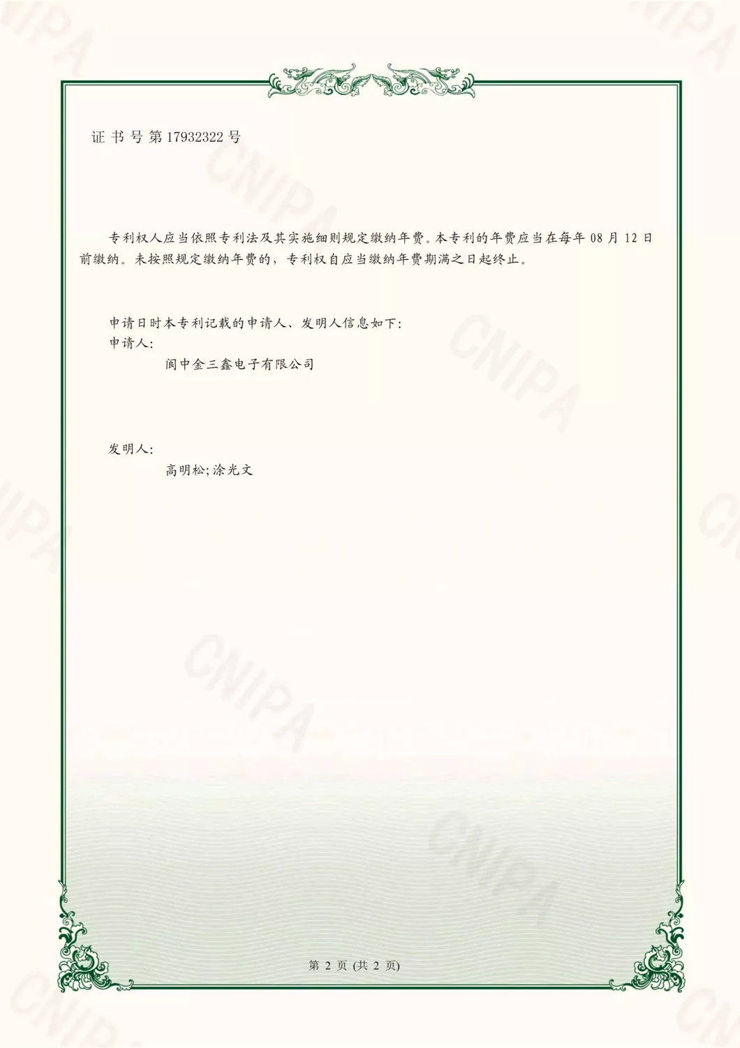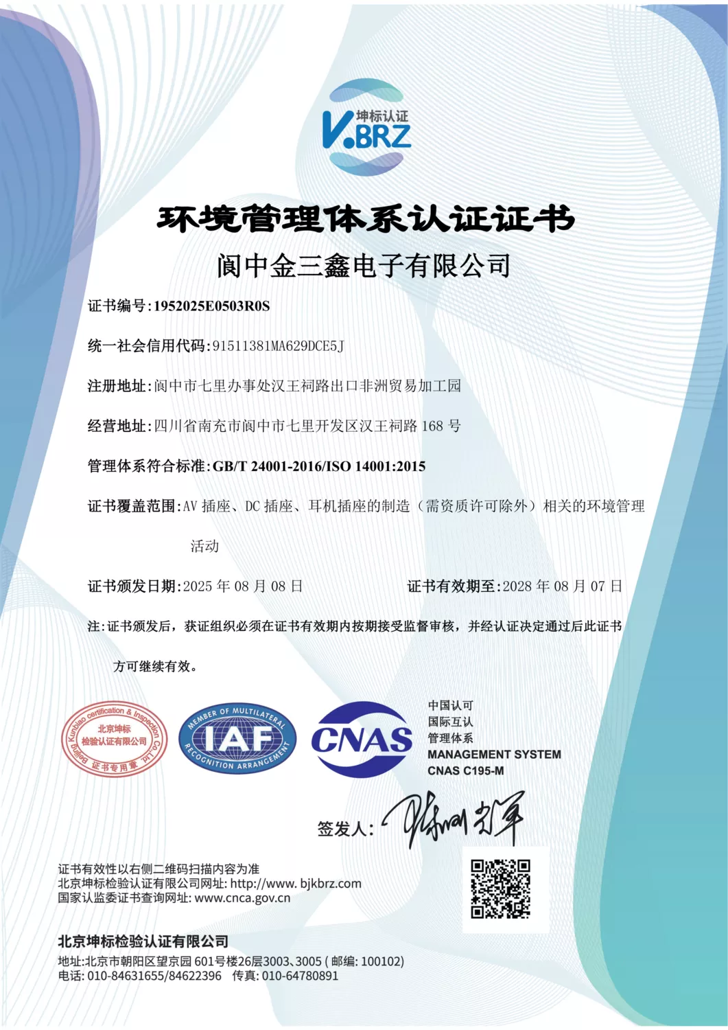 阆中金三鑫电子有限公司成立于2016年11月,是一家专注于以通讯为主的连接器及其组件产品研发、生产和销售的企业,致力于为客户提供完善的互连产品应用解决方案。